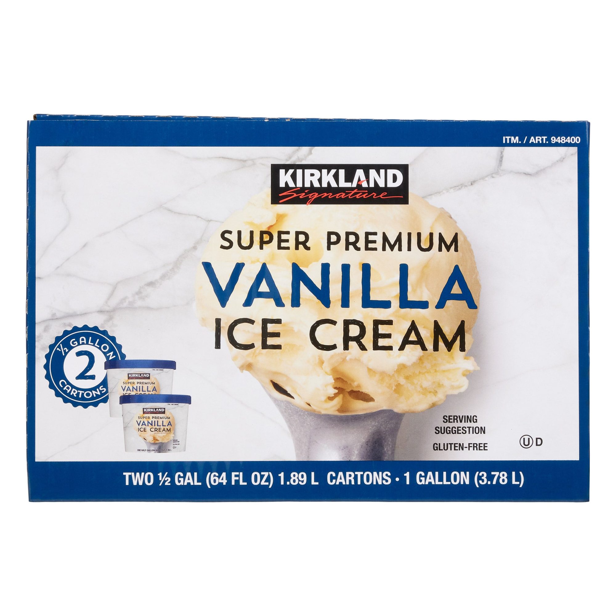 KIRKLAND SIGNATURE SUPER PREMIUM VANILLA ICE CREAM 2/HALF GAL